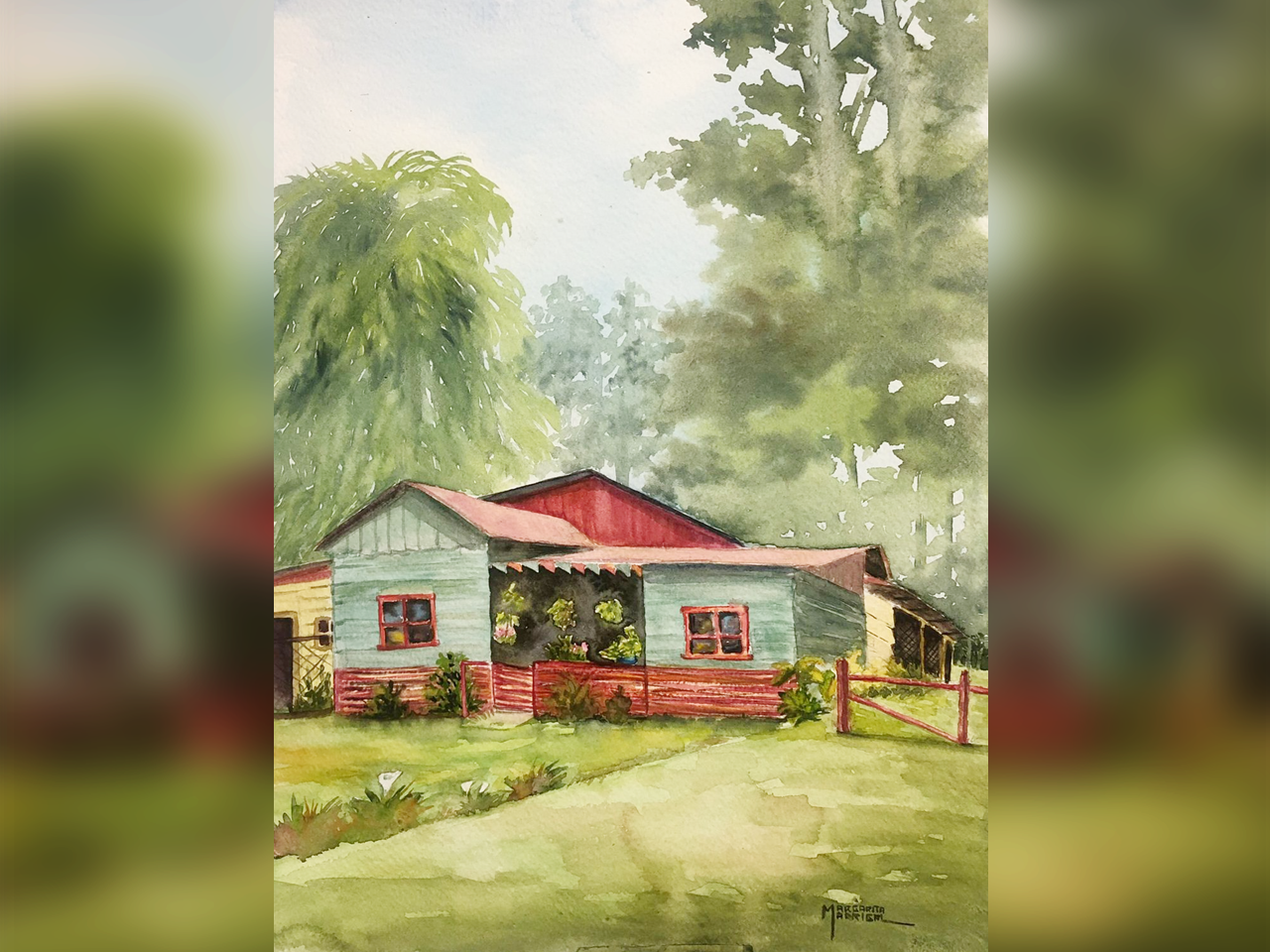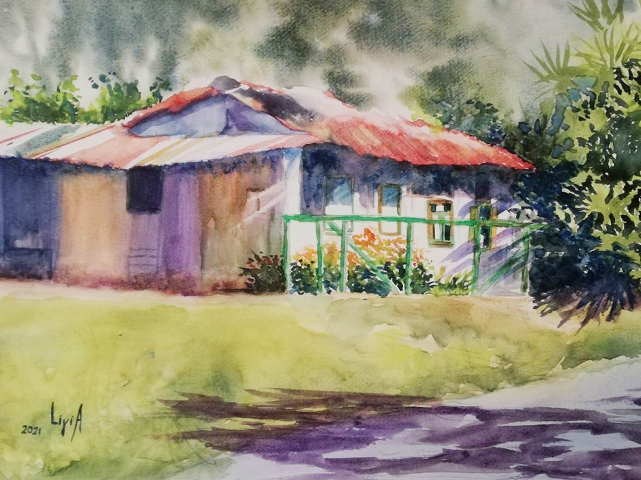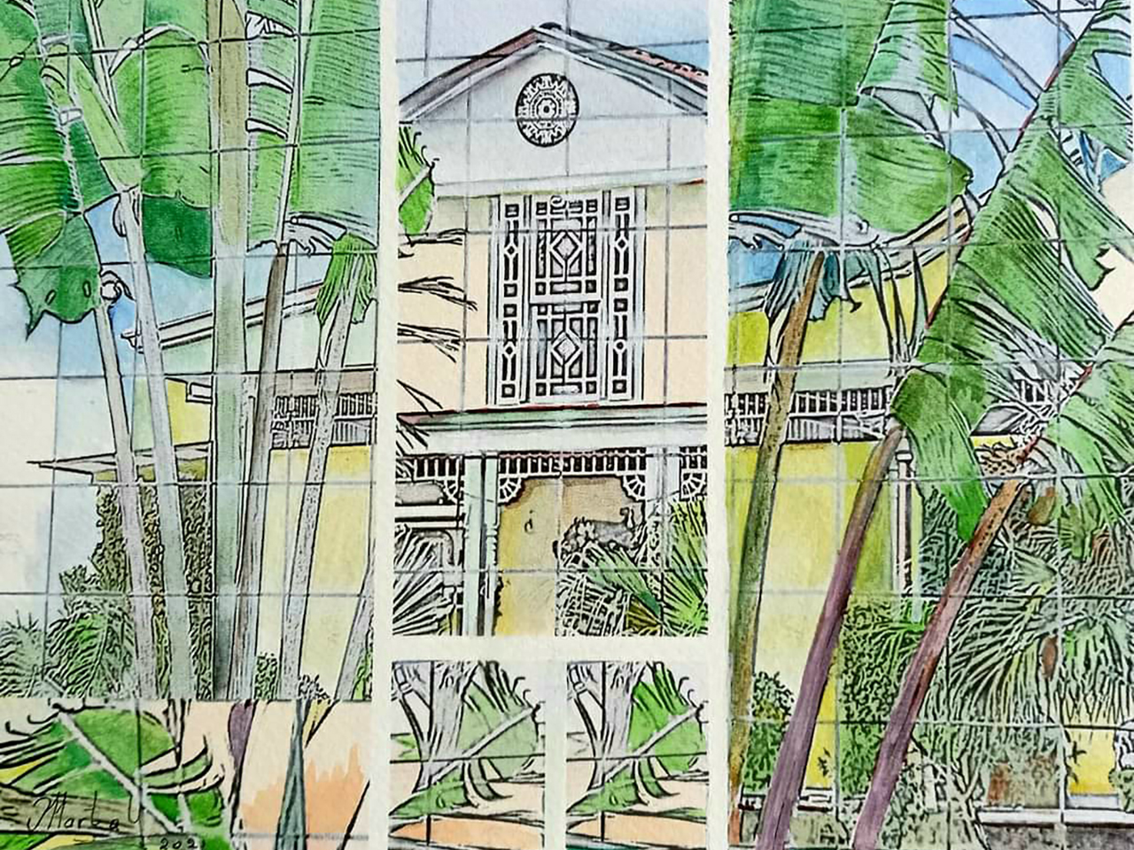 Casa en Barrio Amón, propiedad de la Sra. María Luisa Guevara, quien me recibió con mucho cariño permitiéndome pintar un rincón del jardín de su hogar. Casa declarada Patrimonio Cultural.